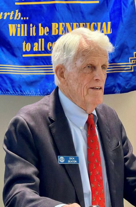 Dick Seaton has been a member of the Club since 1971, was born in Manhattan but grew up in Coffeyville. He has a law degree from Harvard and continues to practice now, reluctantly. He worked in the KS AG office and was part-time KSU general counsel for 15 years. He has 3 and his wife Martha has 2 grown children. He's particularly proud of Rotary's Polio+ and the friendship of the Club. Few know that Dick was an All-American swimmer in college!