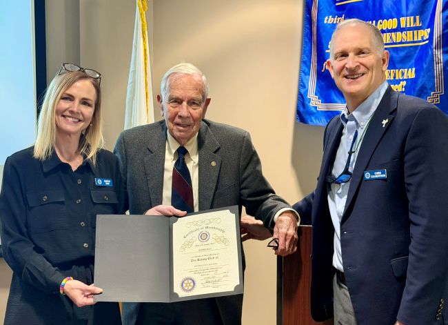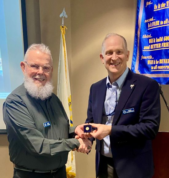 I presented Mike Heylin with a Paul Harris Fellow +2 pin for his contributions.