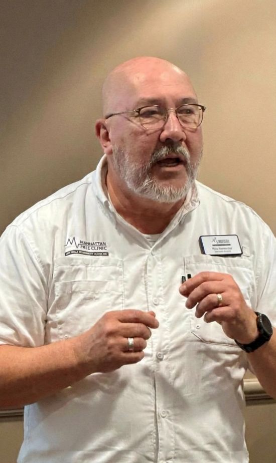 Daryn Soldan then introduced Rick Hernandez, ED of the Flint Hills Community Clinic, also known as the Manhattan Free Clinic. With 2 locations, the clinic provides quality and compassionate FREE medical care to the uninsured living in Manhattan and neighboring communities.