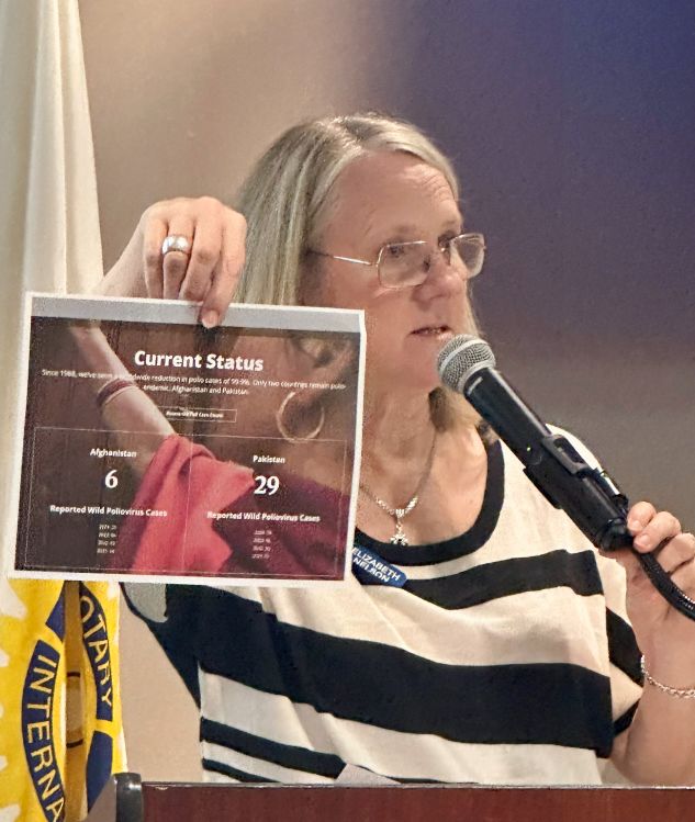 Liz Nelson then gave a final October Polio Month report, noting the only cases in the world in Pakistan and Afghanistan. She told us how to make various contributions.