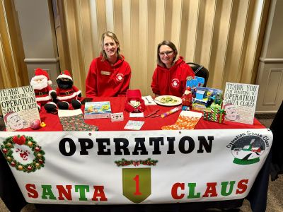 Phil Mattox next introduced the Operation Santa Claus' Carolines (Ingram and Shafer) to tell us more about this year's efforts to bring Christmas to Ft. Riley enlisted persons' families. He also acknowledged Kate & Kelly at the donations table.